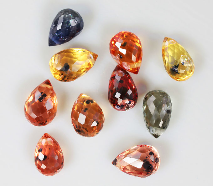 Брошь c бриолетами разноцветных сапфиров и лейкосапфирами