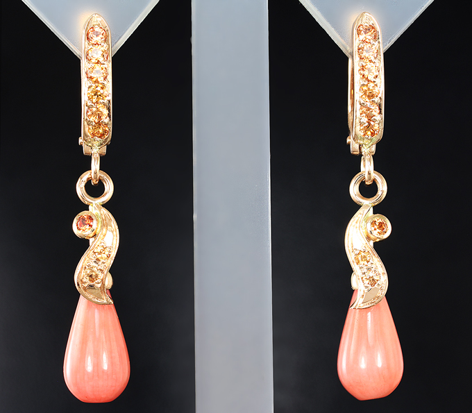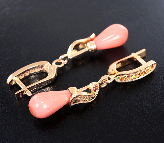 Серьги с solid кораллами 7,3 карата и сапфирами