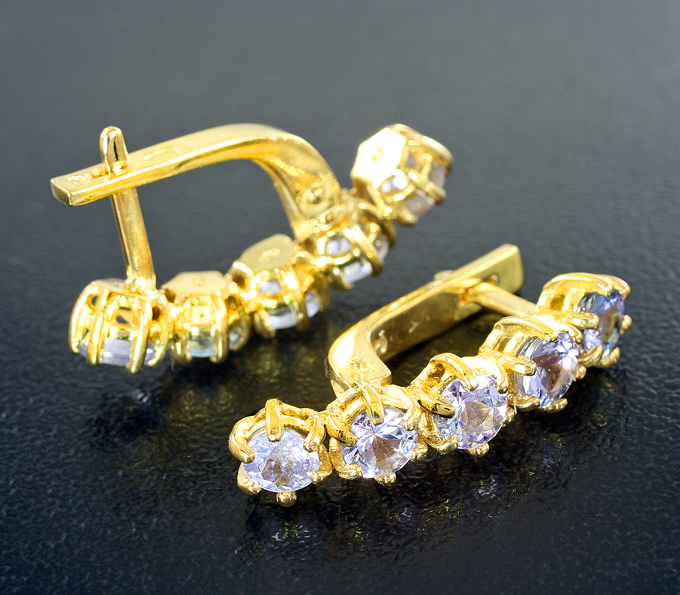 Вашему вниманию предлагаются серьги из стерлингового серебра (925 проба) с танзанитами! Изделие позолочено. Площадка серег 23 х 6 мм. Вес пары 4,1 г. Ниже приводятся ювелирные характеристики.