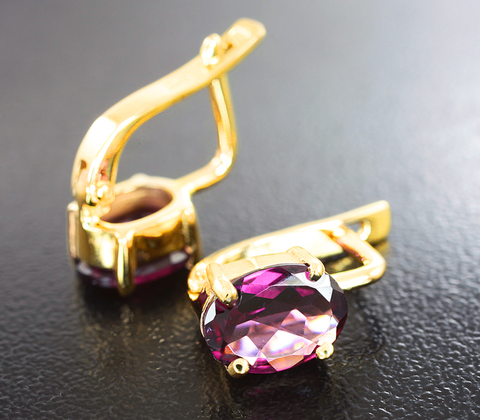 Вашему вниманию предлагаются серьги из желтого золота 585 пробы с родолитами гранатами 2,57 карата! Размеры вставок 8 х 6 мм. Размеры серег с петлей 12 х 6 мм. Вес пары 2,7 г.