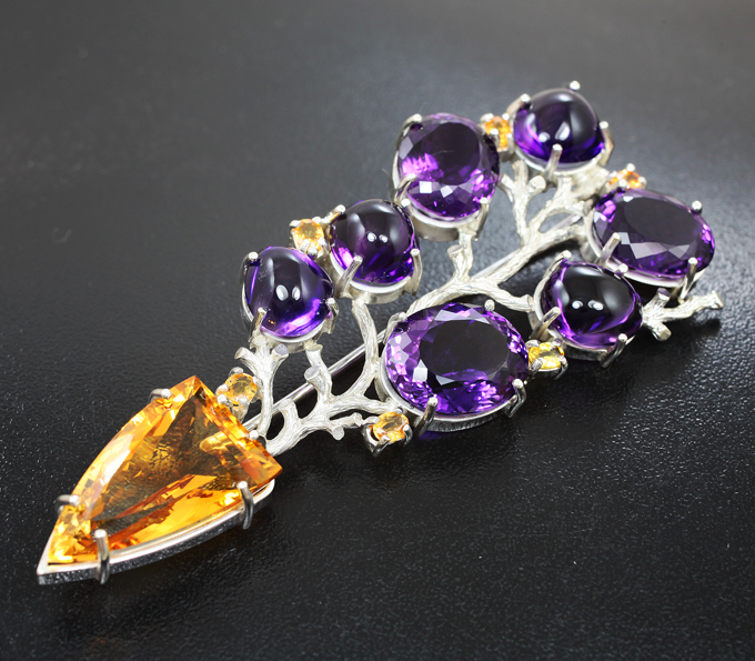 Брошь с цитрином 17 карат, аметистами 20,1 карата и желтыми сапфирами