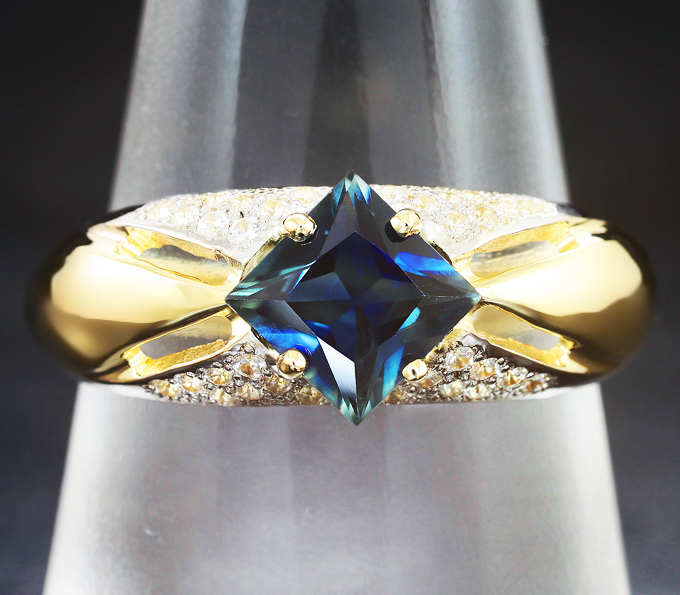 Кольцо с синим сапфиром 1,1 карата и бесцветными цирконами