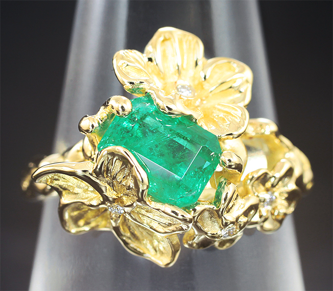 Кольцо с изумрудом 1,13 карата и бриллиантами