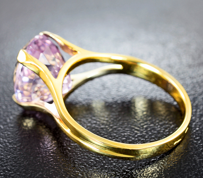Вашему вниманию предлагается кольцо из желтого золота 585 пробы с чистейшим розовым кунцитом! Площадка 11 х 9,2 мм, высота 8 мм. Вес изделия 3,7 г. Размер 18. Ниже приводятся ювелирные характеристики вставки.