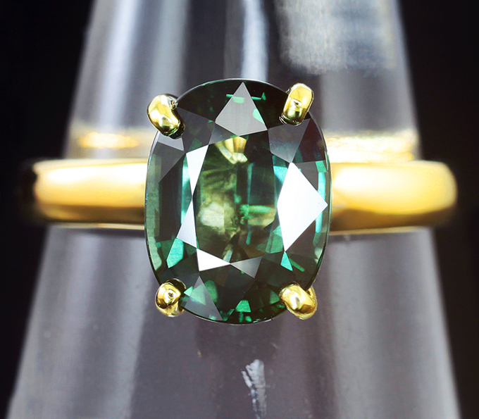 Кольцо c голубовато-зеленым «неоновым» сапфиром 2,97 карата