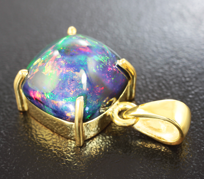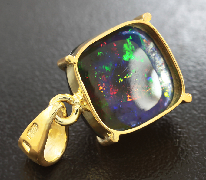 Вашему вниманию предлагается кулон из стерлингового серебра (925 проба) с кристаллическими черными опалами! Изделие частично позолочено. Основные цвета опалесценции: красный, желтый, зеленый, синий и фиолетовый. Размеры кулона с петлей 23 х 13 мм. Вес изделия 2,6 г. Ниже приводятся ювелирные характеристики вставки.
