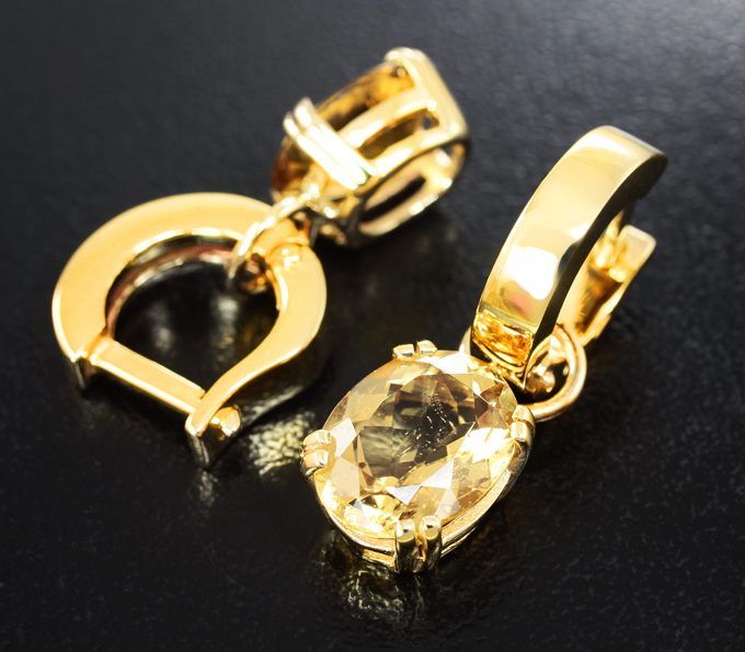 Вашему вниманию предлагаются серьги из желтого золота 585 пробы с гелиодорами 4,58 карата! Размеры вставок 10 х 8 мм. Площадка серег 23 х 8 мм. Вес пары 7,2 г.