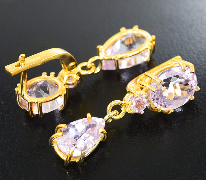 Cерьги с афганскими кунцитами 14,74 карата и розовыми сапфирами
