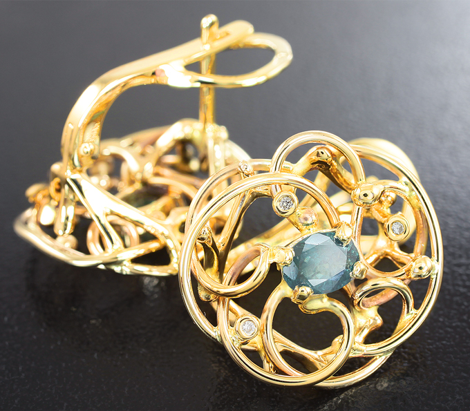 Вашему вниманию предлагаются серьги из желтого золота 585 пробы с александритами 1,34 карата и бриллиантами! Размеры вставок 1,1 мм и 6 х 4 мм. Площадка серег 19 х 18 мм. Вес пары 8,3 г.