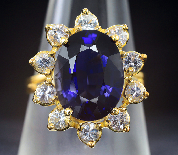 Кольцо c иолитом топового качества 4,98 карата и лейкосапфирами