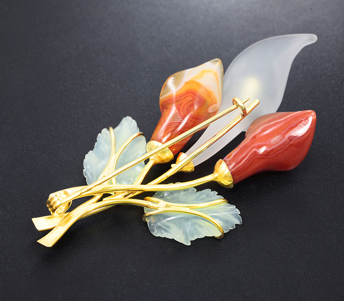 Брошь c резным кварцем 46,82 карата и миниатюрами из цельного мексиканского агата 28,25 карата