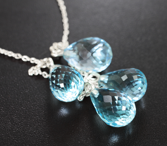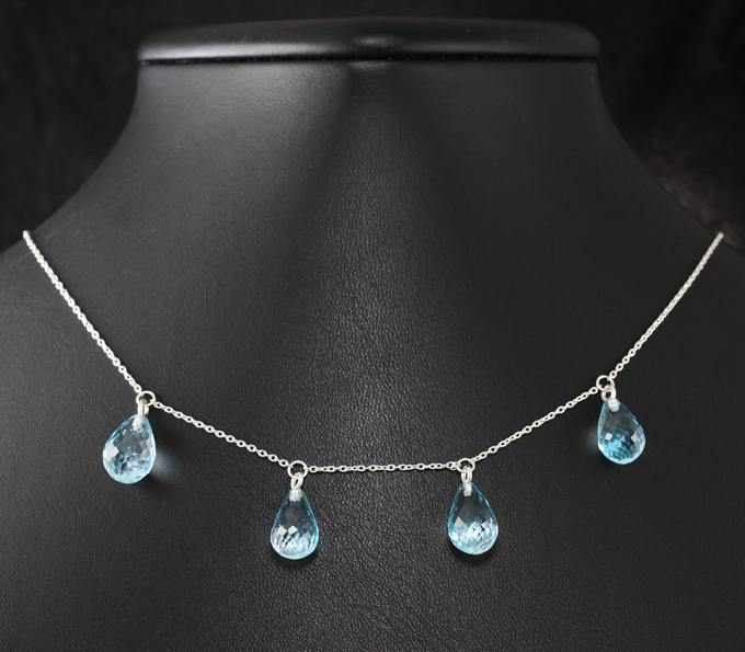 Колье с бриолетами голубых топазов 25,96 карата