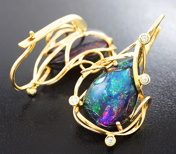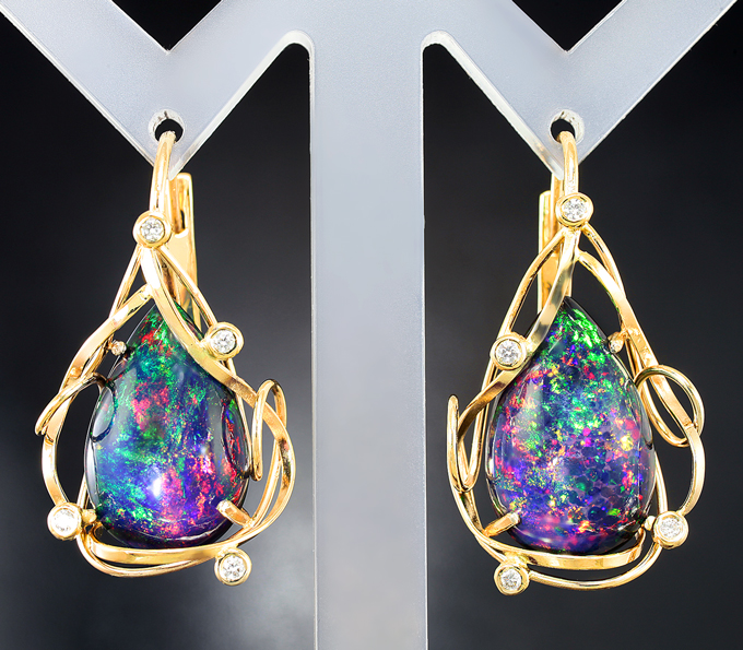 Комплект с кристаллическими черными опалами 17,35 карат и брилилантами