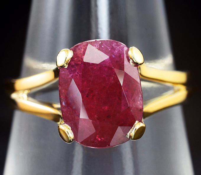 Вашему вниманию предлагается кольцо из желтого золота 585 пробы с крупным рубином! Площадка 10 х 8 мм, высота 7 мм. Вес изделия 3 г. Размер 16,75. Ниже приводятся ювелирные характеристики вставки.