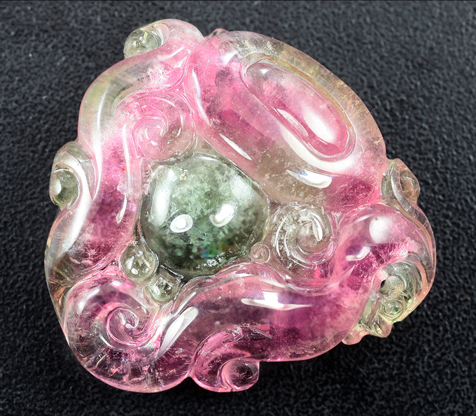 Кольцо c крупным резным арбузным турмалином 24,6 карата