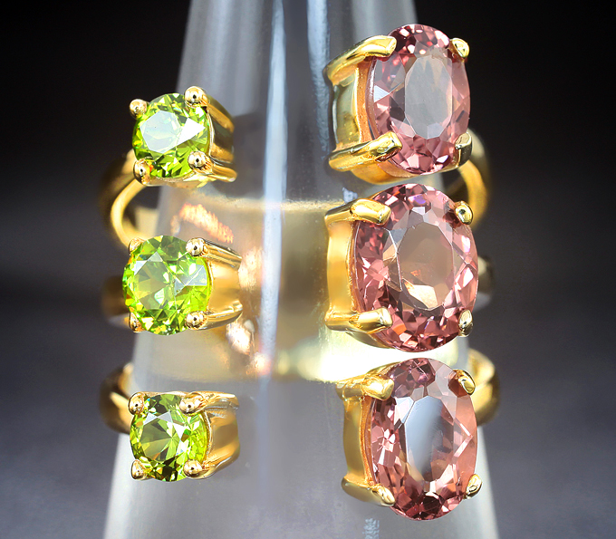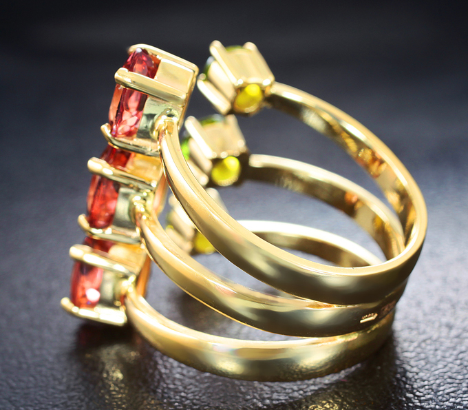 Кольцо с уральскими демантоидами гранатами 1,08 карата и апатитами падпараджа 3,74 карата