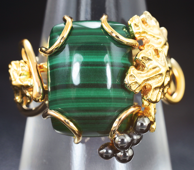 Вашему вниманию предлагается комплект (кольцо + серьги) из желтого золота 585 пробы с уральским малахитом на подложке из долерита! Изделия с частичным чернением. Вес комплекта 22,1 г.