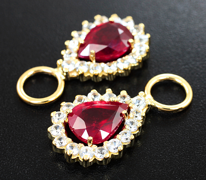 Подвески для серег с рубинами 4,75 карата и бесцветными цирконами