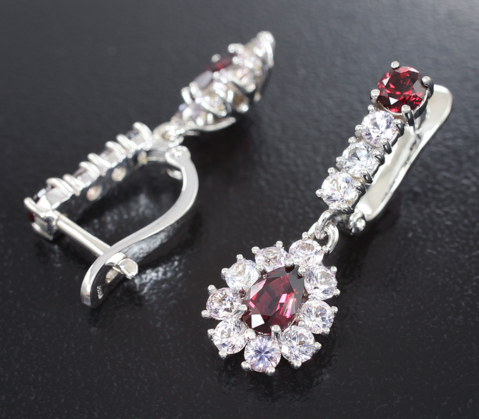Серьги с рубиновыми и пурпурно-розовыми шпинелями 3,21 карата