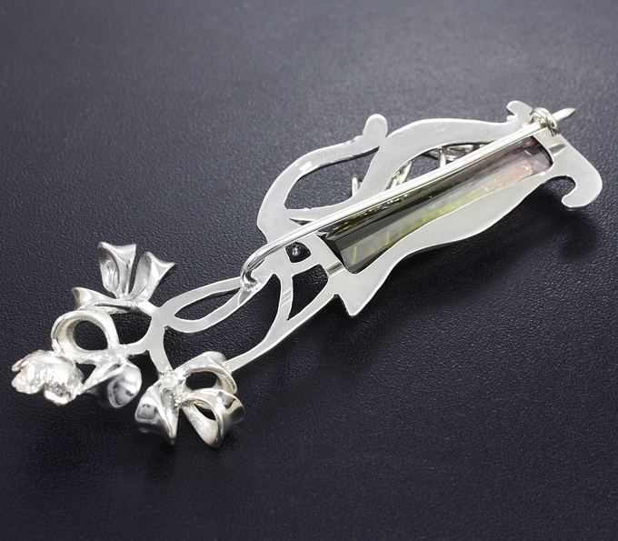 Вашему вниманию предлагается кулон из стерлингового серебра (925 проба) с арбузным турмалином и перидотами! Диаметр дополнительной инкрустации 2,5 мм. Площадка броши 68 х 22 мм. Вес изделия 9,3 г. Ниже приводятся ювелирные характеристики вставки.