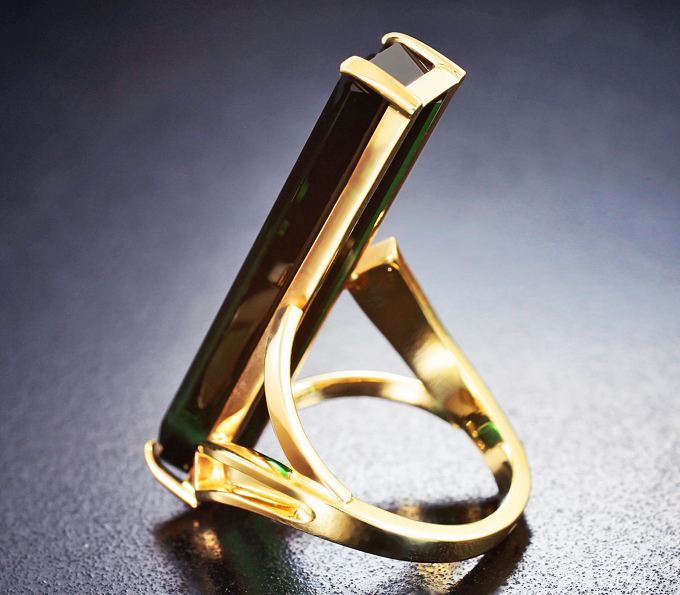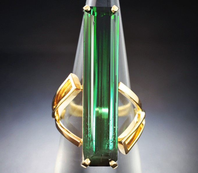 Кольцо с крупным изумрудно-зеленым турмалином 11,65 карата