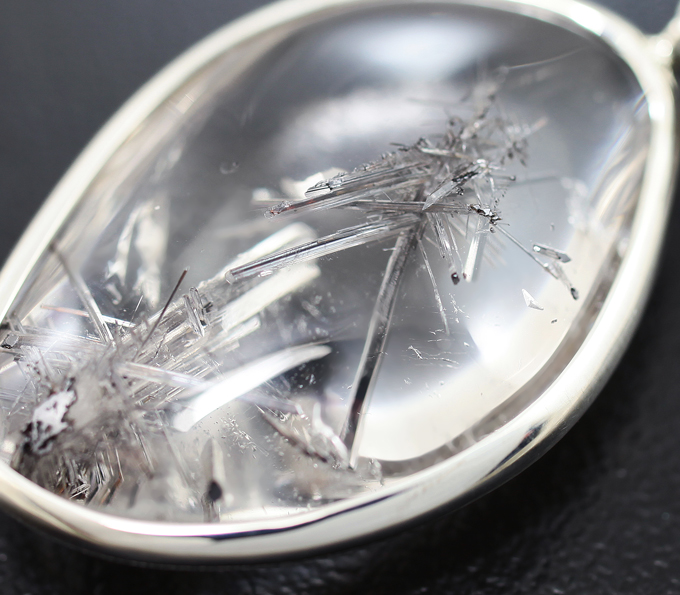 Кулон с редким кварцем с серебряным рутилом и пластинкой слюды 65,5 карата