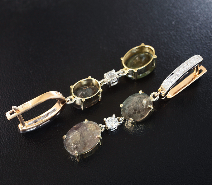 Серьги с уральскими александритами 13,64 карата и бриллиантами