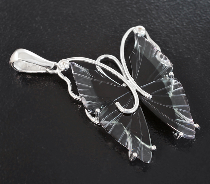 Кулон с резными полихромными турмалинами 7,63 карата и бесцветными цирконами