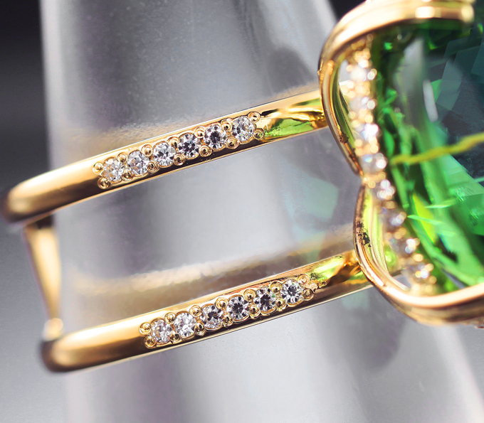 Кольцо с зеленым турмалином 22,88 карата и муасанитами