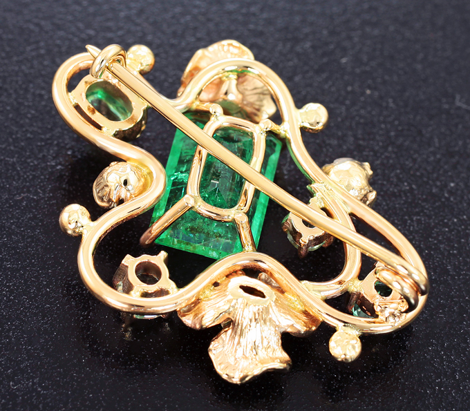 Брошь с изумрудами, аквамарином, бериллом и бриллиантами