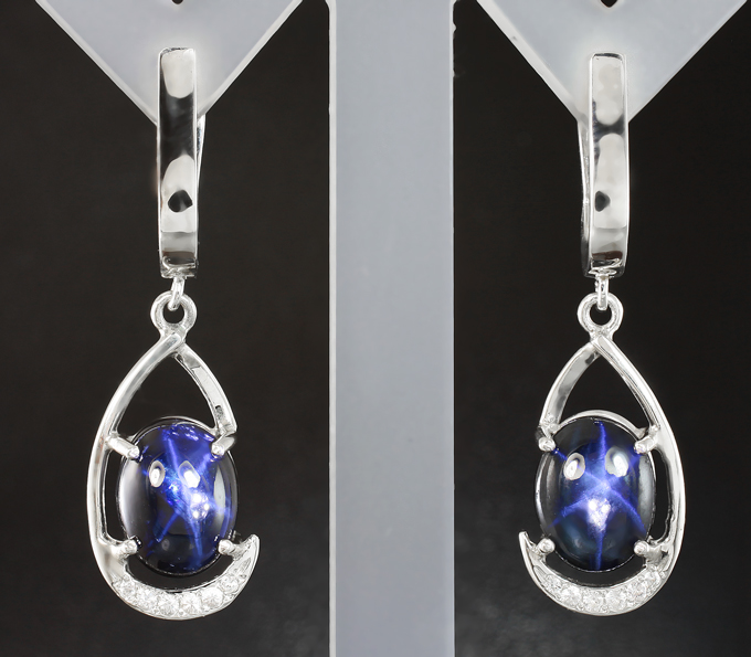 Комплект со звездчатыми сапфирами 14,97 и бесцветными цирконами