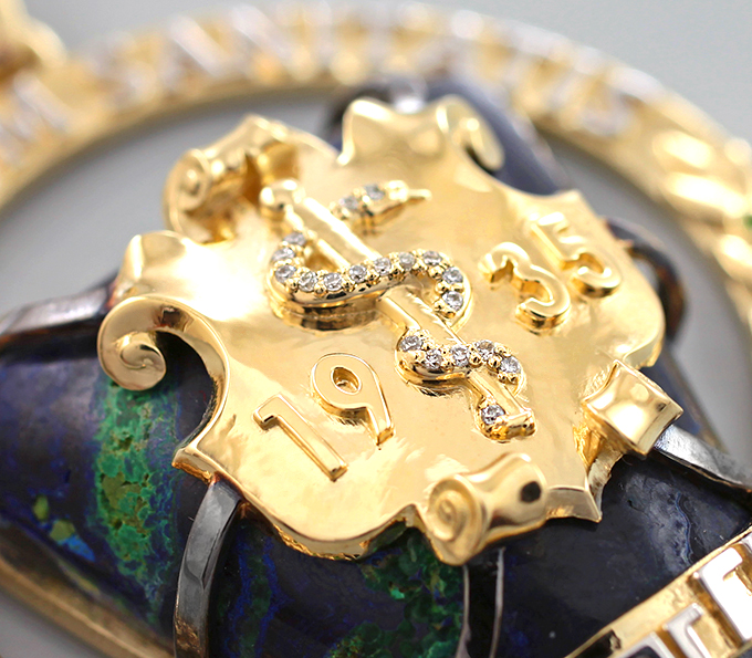 Кулон с малахитом в азурите 62,7 карата, диопсидами и бриллиантами