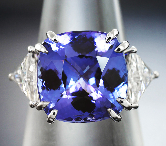 Кольцо с танзанитом 8,43 карата и муассанитами