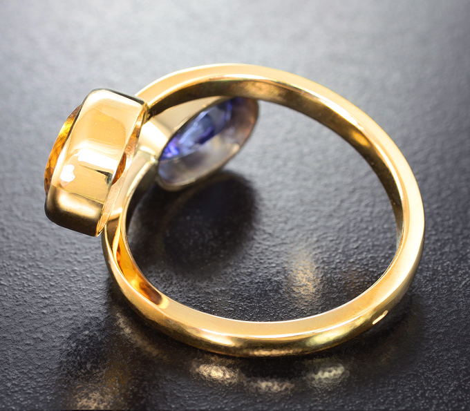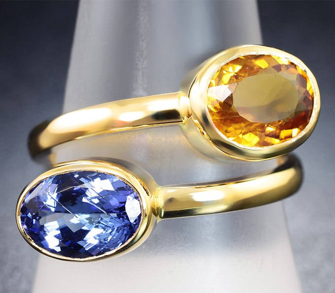 Кольцо с танзанитом 2,32 карата и гелиодором 2,29 карата