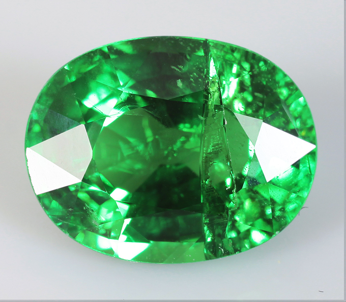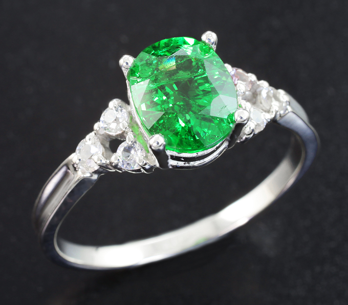 Кольцо с цаворитом 2 карата и бесцветными сапфирами