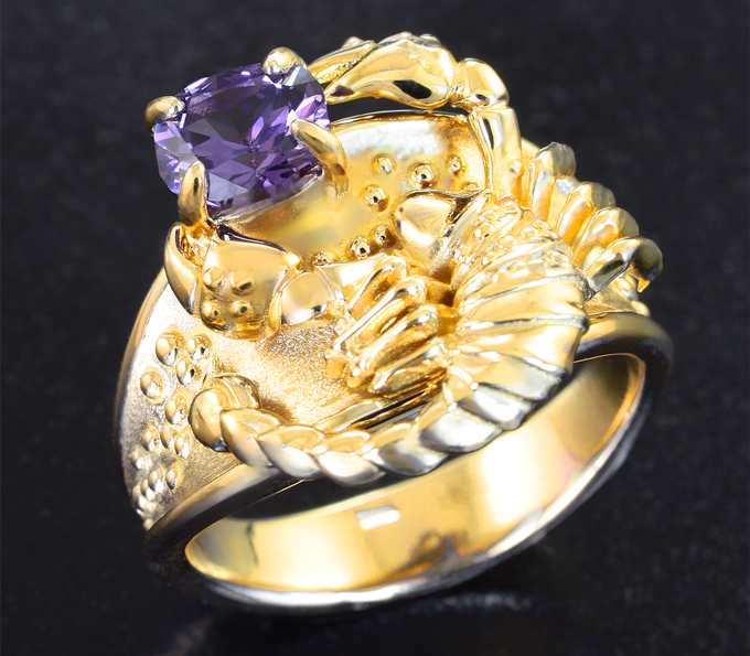 Кольцо с сапфиром топовой огранки со сменой цвета 0,84 карата
