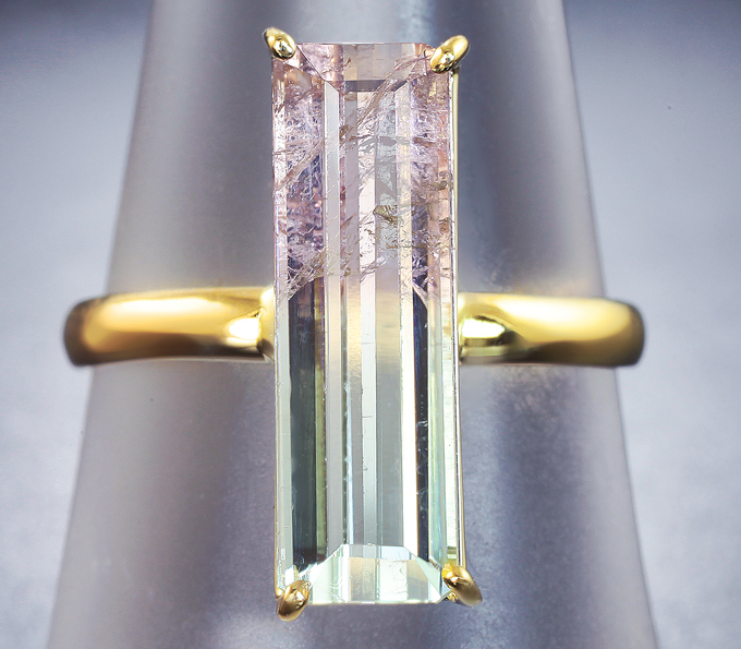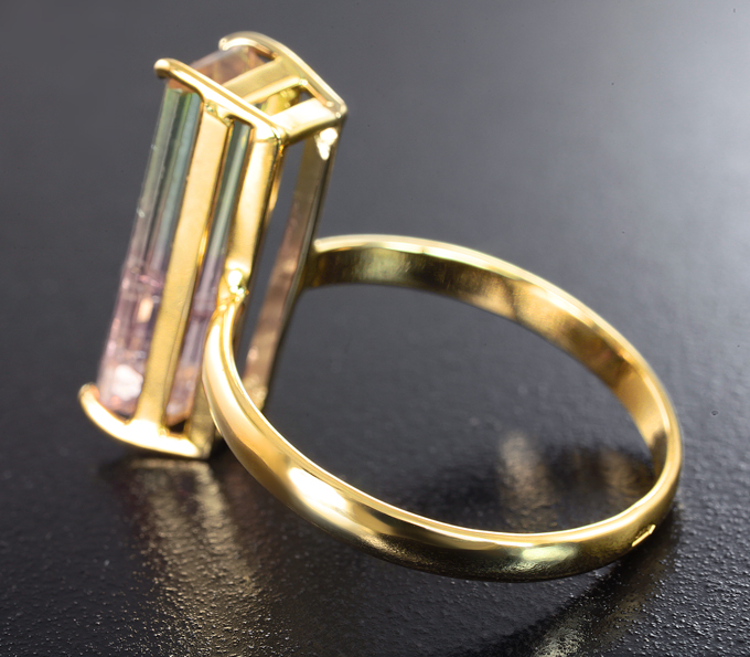 Вашему вниманию предлагается кольцо из желтого золота 585 пробы с арбузным турмалином! Площадка 17 х 6 мм, высота 7 мм. Вес изделия 2,89 г. Размер 17,25. Ниже приводятся ювелирные характеристики вставки.