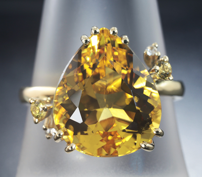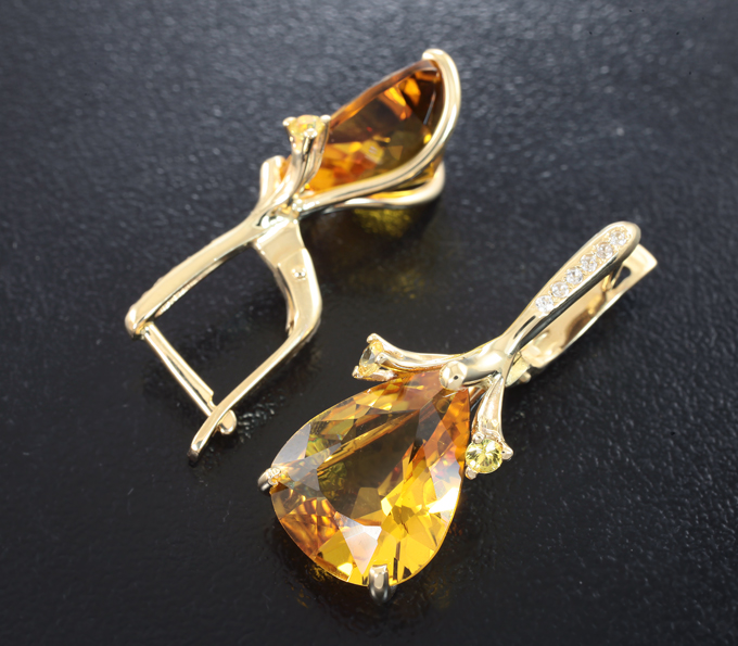 Комплект с гелиодорами 15,84 карата, бесцветными и желтыми сапфирами