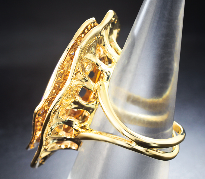Вашему вниманию предлагается кольцо из желтого золота 585 пробы с крупным австралийским черным опалом, фиолетовыми и желтыми сапфирами, а также брилиантами! Основные цвета опалесценции: фиолетовый, синий и зеленый. Диаметр дополнительной инкрустации от 1,25 мм до 2 мм. Площадка 40 х 26 мм, высота 12 мм. Вес изделия 22,4 г. Размер 18,25. Ниже приводятся ювелирные характеристики опала.