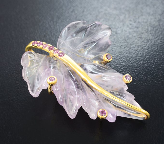 Кулон с резным аметистом 39,85 карата и родолитами гранатами