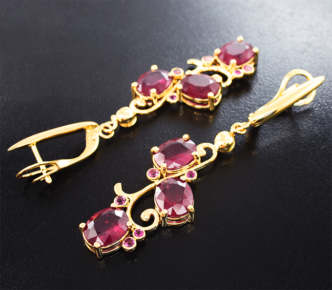 Серьги с рубинами 18,99 карата и рубеллитами турмалинами