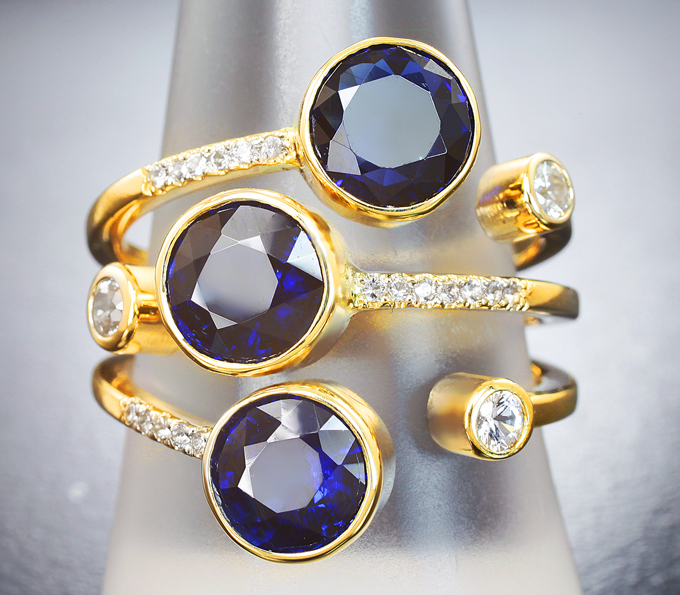 Вашему вниманию предлагается комплект (кольцо + пусеты) из желтого золота 585 пробы с кианитами 8,77 карата и бесцветными цирконами! Диаметр вставок 0,9 мм до 7 мм. Вес комплекта 12,16 г.