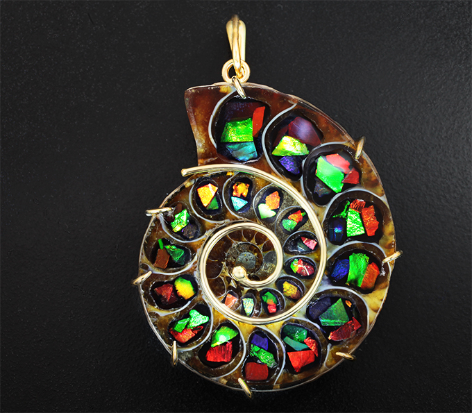 Комплект с аммонитами с аммолитовой мозаикой 178,16 карата