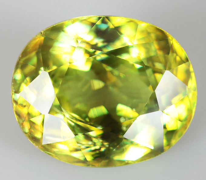 Вашему вниманию предлагается кольцо из белого золота 585 пробы cо сфеном и хромдиопсидами! Диаметр дополнительной инкрустации 1,1 мм. Площадка 15 х 8 мм, высота 6 мм. Вес изделия 4,48 г. Размер 17,5. Ниже приводятся ювелирные характеристики вставки.