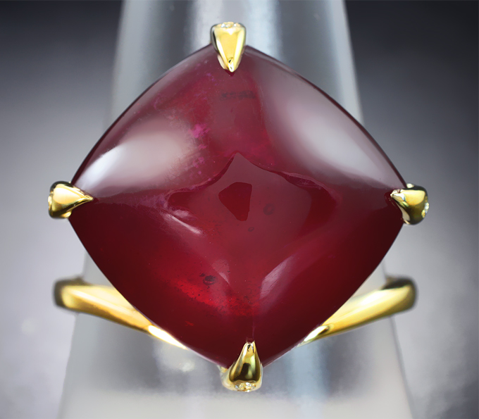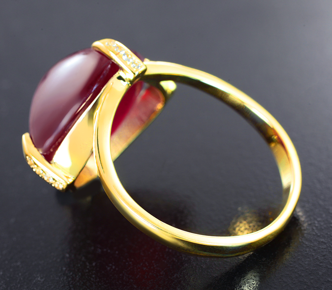 Кольцо с крупным рубином 25,11 карата и бесцветными цирконами