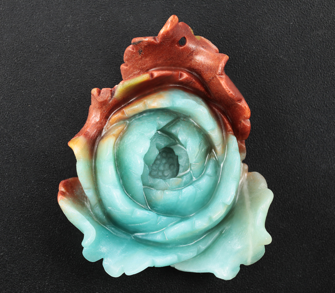 Миниатюра-подвеска «Пион» из цельного полихромного амазонита