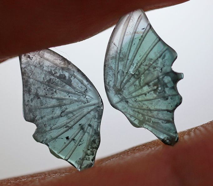 Кулон с резными зелеными турмалинами 2,62 карата и синими сапфирами