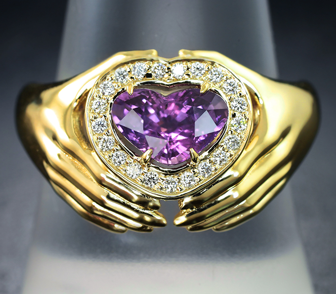 Кольцо с пурпурным сапфиром редкой огранки 1,48 карата и бриллиантами