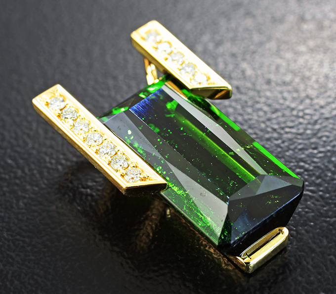 Кулон с крупным зеленым турмалином 10,58 карата и бриллиантами