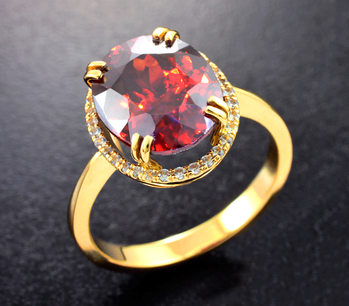 Кольцо cо сфалеритом 7,47 карата и бесцветными цирконами